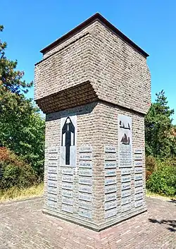 Leendert Bolle ontwierp een groot gestileerd kruis van ongeveer vijf meter hoog met aan de vier zijden natuurstenen plaquettes. Op drie plaquettes staat in reliëf een vrouw in verschillende gemoedstoestanden: wenend, biddend en berustend. Op de vierde plaquette staan twee vissersschepen en de tekst: