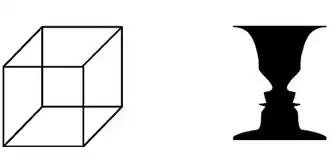 Multistabiliteit: links Necker-kubus, rechts vaas van Rubin