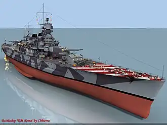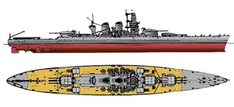 | Bewapening | 3x3 381 mm-kanonnen 4x3 152 mm-kanonnen 4x1 120 mm-kanonnen voor lichtkogels 20x 37 mm-luchtdoelgeschut 20x 20 mm-kanonnen en 6x 8 mm-machinegeweren | |||