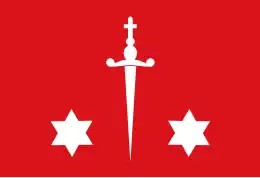 Rood, met op het midden van wit een puntig zwaard, naar beneden gericht, ter weerszijden vergezeld van een witte zespuntige ster.