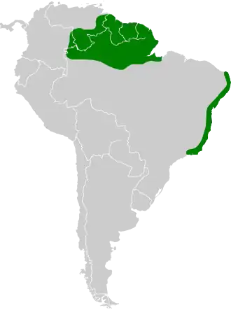 Deze soort komt voor in centraal en zuidelijk Venezuela, noordelijk Brazilië en de Guiana's, ook in oostelijk Brazilië.