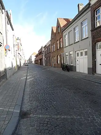 De Vlamingstraat die in de 13de eeuw liep van de Markt tot aan de Vlamingpoort, kende een verlenging buiten de wallen en die noemde men Buter Vlamincpoorte. Dit was een lange weg, die liep tot in Sint-Pieters-op-den-Dijk.
