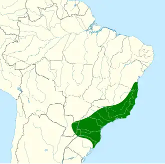 Deze soort komt voor in zuidoostelijk Brazilië, oostelijk Paraguay en noordoostelijk Argentinië.