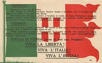 In Oostenrijk heerste er nervositeit over de aanwezigheid van deze pamfletten op de regeringsgebouwen. Oostenrijk-Hongarije stond aan de rand van ineenstorting ondanks het feit dat de Oostenrijkers de Italianen militair gesproken, stevig achteruit op het front duwden.