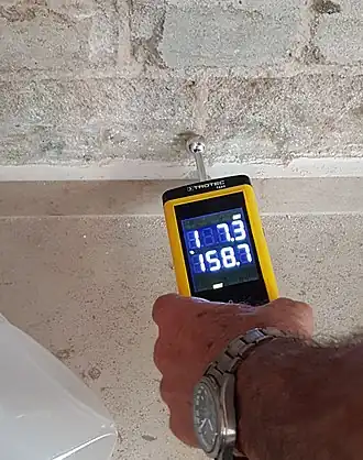 De diƫlektrische meting werkt met een ander elektrisch principe dat toelaat om niet-destructief dieper in de materialen te dringen. Hiermee kan vochtigheid tot enkele centimeter in de muur gemeten worden. Met behulp van een strooiveld wordt door een grotendeels bolvormige sensor op een niet-destructieve manier enkele centimeters diep in de bouwsubstantie gemeten.