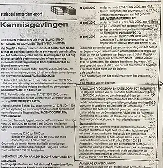 - ↑ Besluit van 3 maart 2014, Staatscourant 2014 nr. 6120. Zie ook het bericht 'Amsterdam-Noord aangewezen als beschermd stadsgezicht[dode link]' d.d. 4 maart 2014 op de website van de Rijksdienst voor het Cultureel Erfgoed.