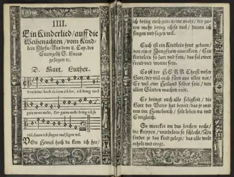 Maarten Luther componeerde liederen voor alle christelijke feesten, in totaal meer dan dertig. Volgens de legende schreef hij dit kerstlied voor Kerstmis 1533/1534 voor zijn eigen kinderen. Het lied verscheen in deze vorm in het Klugsches Gesangbuch van 1535. Luther componeerde later zelf de koraalmelodie, die voor het eerst werd gedrukt in 1539 en waarop het lied sindsdien wordt gezongen.