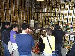 - Als twee derde deel van een wierookstokje is verbrand, steekt men de papieren offers in brand.