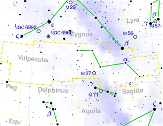 - Ook interessant is Collinder 399 of Brocchi's Cluster, ook wel de kleerhanger genoemd. Een groepje van zo'n 8 - 10 sterren gegroepeerd in de vorm van een klerenhanger (kapstok). Het is geen echte sterrenhoop maar slechts een toevallige groepering (een asterisme).