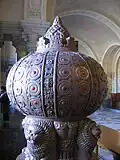 - Naast de ingang van het Vredespaleis werd in 2002 de eeuwige vredesvlam geplaatst. Sinds 2004 is het monument omringd door het "Wereldvredespad", bestaande uit een rand van stenen en steentjes uit 196 landen.