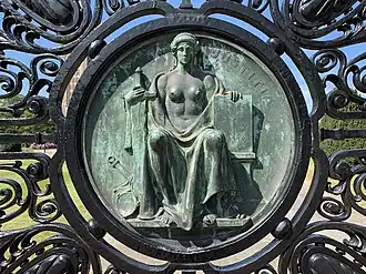 Het rijk versierde hek dat het hele perceel omringt, is een geschenk van Duitsland. Het werd ontworpen door de Berlijnse Jugendstilarchitect Bruno Möhring (1863-1929) en vervaardigd door de firma Schulz & Holdefleiss, die smeedwerk leverde voor vele prestigieuze bouwwerken. De zes pijlers en het muurwerk naast de twee toegangen bestaan uit Oberkirchner zandsteen met gebeeldhouwde bekroningen en een basement van Beiers graniet. De reliëfs van brons in in de pijlers van het hek zijn van de hand van beeldhouwer Wilhelm Widemann (1856–1915).[6]