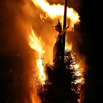 Voor het vuur worden meestal oude en kapotte spullen (als symbool voor het verleden) verzameld, soms aangevuld met complete bomen (zoals bij een kerstboomverbranding of bijvoorbeeld voor het paasvuur).