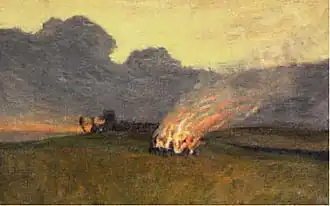 Na bijvoorbeeld vastentijd, oorlogstijd of bij de afsluiting van het jaar[1] is het soms gebruikelijk om een groot vreugdevuur aan te steken. In zo'n vuur wordt symbolisch het (moeizame) verleden verbrand en achter zich gelaten. Soms wordt hiervoor als symbool een (stro)pop gebruikt. Vaak wordt er in een cirkel om het vuur gedanst en gefeest.