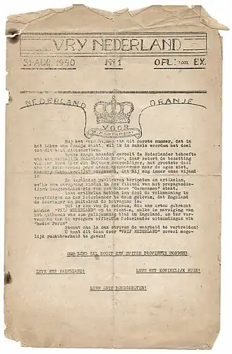 - ↑ Leden verzetsgroep Vrij Nederland bezoeken redactie. Vrij Nederland (31 augustus 2010). Geraadpleegd op 4 mei 2017.