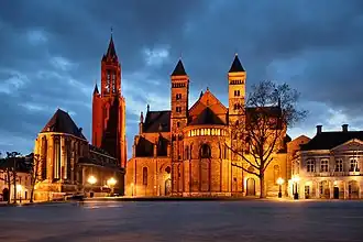 - ↑ Een soortgelijke 'tweeling' bevond zich tot 1838 op het huidige Onze-Lieve-Vrouweplein, gevormd door de nog bestaande kerk van het Onze-Lieve-Vrouwekapittel en de daarnaast gelegen afgebroken Sint-Nicolaaskerk.