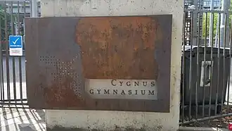 In later jaren zijn enige zaken toegevoegd, voordat poort en reliëf in 2009 aangewezen werden als rijksmonument. Die nieuwe onderdelen maken geen deel uit van het rijksmonument. Ze bestaan uit een betonnen bank en een stalen toegangshek. Een laatste toevoeging dateert van rond 2013, het is een betonblok waarop een cortenstalen plaat rust met een uitsparing waarin de van de gebruiker van het gebouw, Cygnus Gymnasium te lezen is in een stijl van graficus Wouter Overhaus. Het is ontworpen door Jurjen van Beek van Wessel de Jonge Architecten BNA BV, het architectenbureau dat de toenmalige verbouwing begeleidde.