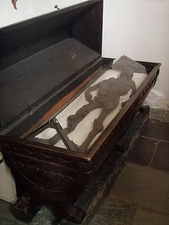 Het overschot werd op 20 oktober 1835 aangetroffen door arbeiders die een sloot uitgroeven. De anaerobe omstandigheden in de ondergrond zorgden voor een uitzonderlijk goede conservering. Het lijk lag op de rug en was in het turf bevestigd met haken over de knieën en ellebogen. Over de borst en het onderlichaam lagen dikke takken die eveneens met haken waren bevestigd. De vrouw lag met haar hoofd in oostelijke richting, kijkend naar het westen. Haar huid was volkomen intact; ze droeg geen kleren, maar er lagen een lederen mantel en drie wollen kledingstukken op het lijk. Dit veenlijk is een van de eerste die door wetenschappers geborgen en onderzocht konden worden. Het lijk werd tot voor kort in een glazen kist in de Sint-Nicolaaskerk van Vejle tentoongesteld. Anno 2018 wordt het aan het publiek getoond in het Cultural Museum Spinderihallerne.[1]