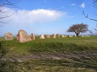 - Aan het brede uiteinde van Nobbins trapeziumvormige bed bevinden zich Wächtersteine van respectievelijk 3,3 en 3,4 meter lengte en een gewicht van 25 ton. Aan het smalle uiteinde zijn ze 1,5 meter hoog en wegen ze bijna zes ton.