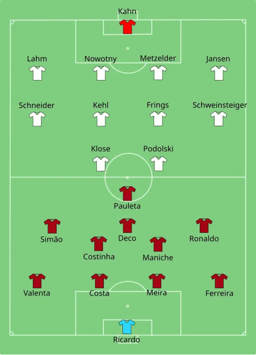 opstellingen | Ricardo Paulo Ferreira Richardo Costa Fernando Meira Simão Sabrosa Cristiano Ronaldo Maniche Deco |