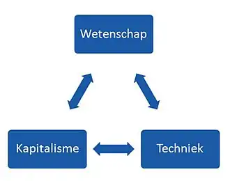 In eerste instantie is ieder systeem autonoom groeiend omdat de mensheid op zich de onweerstaanbare drang kent naar verbetering. Een wetenschapper zal bijvoorbeeld streven naar nieuwe ontdekkingen, zoals een kapitalist streeft naar een groter kapitaal. In het tweede geval stuwen de drie systemen elkaar vooruit omdat zij de andere systemen mogelijkheid bieden tot groei. Zo blijkt dat als het kapitaal groter wordt, er bijvoorbeeld ook meer geïnvesteerd kan worden in wetenschappelijk onderzoek en innovatieve technologie (en omgekeerd).