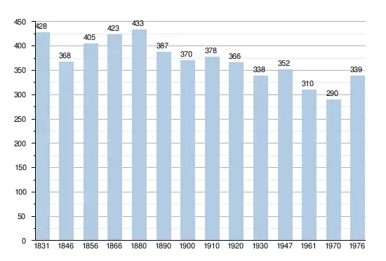 - Bronnen:NIS, Opm:1831 tot en met 1970=volkstellingen, 1976= inwoneraantal op 31 december