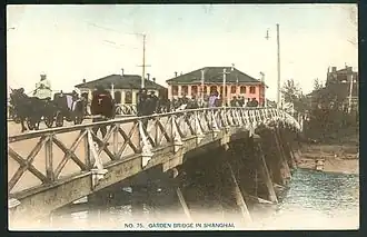 De Waibaidubrug was de eerste volledig stalen brug in China en werd op 20 januari 1908 in gebruik genomen. Het was niet de eerste brug op die locatie. Initieel voeren boten heen en weer tussen beide oevers van de rivier, tot in de 18de eeuw de rivier eerst van een sluis en vervolgens van een tweede sluis werd voorzien. Dit liet toe bij gesloten sluisdeuren de rivier over te steken. In de 19de eeuw slaagden de Chinezen in een constructie van een brug die evenwel in 1855 instortte. In 1856 werd door de Britten een vervangbrug gebouwd in hout, met een lengte van 137 m. Deze tolbrug versleet en de uitbaters bouwden een vervangbrug in ijzer die evenwel al na twee jaar het begaf. De tolbruggen werden in 1873 vervangen door een brug waar geen tolgeld meer geheven werd. Tijdelijk werd een houten brug op vlotters ingezet tot de tolbruggen afgebroken waren en een nieuwe houten brug in 1876 was afgewerkt. Door de opening van de vlakbijgelegen Public Garden in het noorden van de Bund, kreeg de brug ook de benaming Garden Bridge (Tuinbrug) mee. In 1906 raakte de brug zwaar beschadigd.