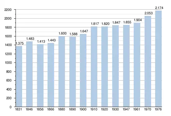 - Bronnen:NIS, Opm:1831 tot en met 1970=volkstellingen; 1976 = inwoneraantal op 31 december