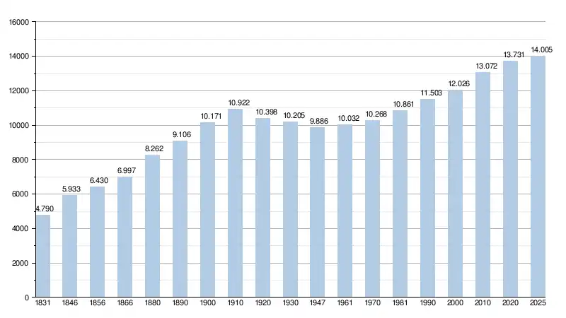 Alle historische gegevens hebben betrekking op de huidige gemeente, inclusief deelgemeenten, zoals ontstaan na de fusie van 1 januari 1977.