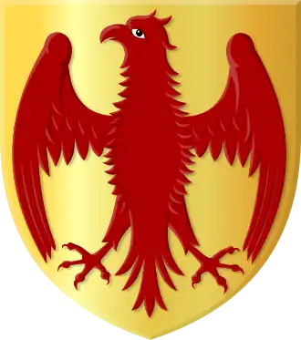 In goud een adelaar met neerwaartse gerichte vlucht van keel.[1]