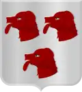 Van lazuur, beladen met 3 hondenkoppen van goud.[2]