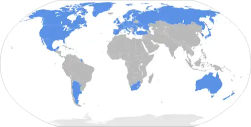 De 42 deelnemende landen (situatie van september 2018) zijn: Argentinië, Australië, België, Bulgarije, Canada, Denemarken, Duitsland, Estland, Finland, Frankrijk, Griekenland, Hongarije, Ierland, India, Italië, Japan, Kroatië, Letland, Litouwen, Luxemburg, Malta, Mexico, Nieuw-Zeeland, Nederland, Noorwegen, Oekraïne, Oostenrijk, Polen, Portugal, Roemenië, Rusland, Slowakije, Slovenië, Spanje, Tsjechië, Turkije, Verenigd Koninkrijk, Verenigde Staten, Zuid-Afrika, Zuid-Korea, Zweden, Zwitserland.
