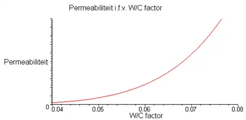 Ook de permeabiliteit (waterdoorlaatbaarheid) en daarmee de duurzaamheid van het beton, hangt sterk af van de W/C-factor. In "zachte" omstandigheden (een altijd droge binnenmuur) mag een W/C-factor tot 0,65 gebruikt worden: een dergelijk beton wordt toch niet aan instroom van voor het beton schadelijke ionen blootgesteld.