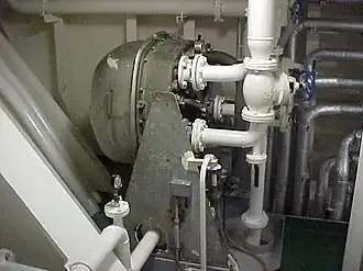 - bovenste kamer: in de bovenste kamer wordt het water gecondenseerd zodat dit afgevoerd kan worden naar een tank. Voor het condenseren van dit water is een koeler geplaatst waardoor zeewater geleid wordt;