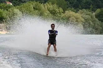 Waterskiën is een watersport waarbij een skiër door mechanische trekbeweging (meestal door een boot, soms door een kabelskibaan) op ski's of blote voeten over het water voort getrokken wordt.