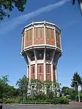 Deze watertoren staat ook bekend als de eerste watertoren met een skelet van gewapend beton. De toren is opgebouwd uit 12 grote betonnen palen (het skelet dus) waartussen de muren gemaakt werden.