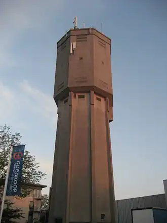De watertoren is van beton en heeft een hoogte van 35 meter en heeft één waterreservoir van 275 m³. De toren is te zien in de wijde omtrek.
