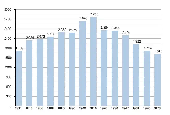 - Bronnen:NIS, Opm:1831 tot en met 1970=volkstellingen; 1976 = inwoneraantal op 31 december