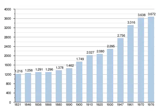 - Bronnen:NIS, Opm:1831 tot en met 1970=volkstellingen; 1976 = inwoneraantal op 31 december