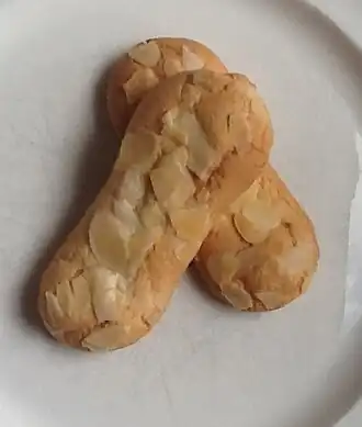 Een Wellington is een koekje gemaakt van zeer fijn gemalen amandelspijs gemengd met eiwit. Het deeg wordt op vellen ouwel gespoten en eventueel versierd met een amandel of bigarreaux.