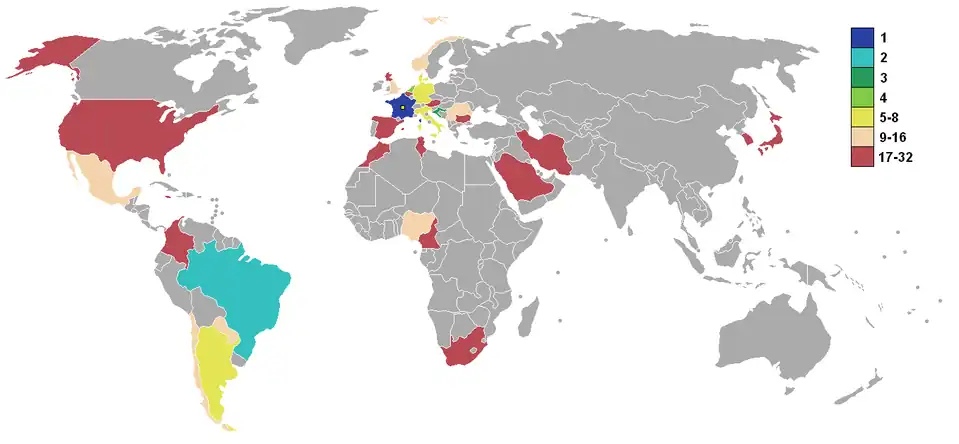 Vlag van Frankrijk Frankrijk UEFA Gastland 2 juli 1992 10e 1 1930 1986 0 Winnaar