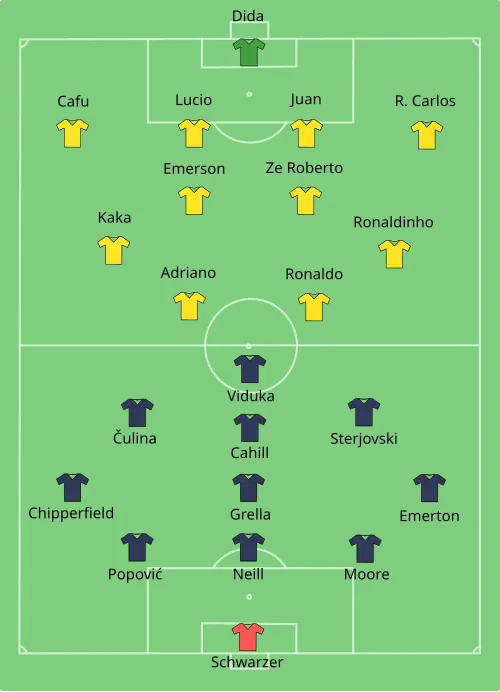 opstellingen | Mark Schwarzer Lucas Neill Jason Čulina Brett Emerton Vince Grella Scott Chipperfield Mile Sterjovski |