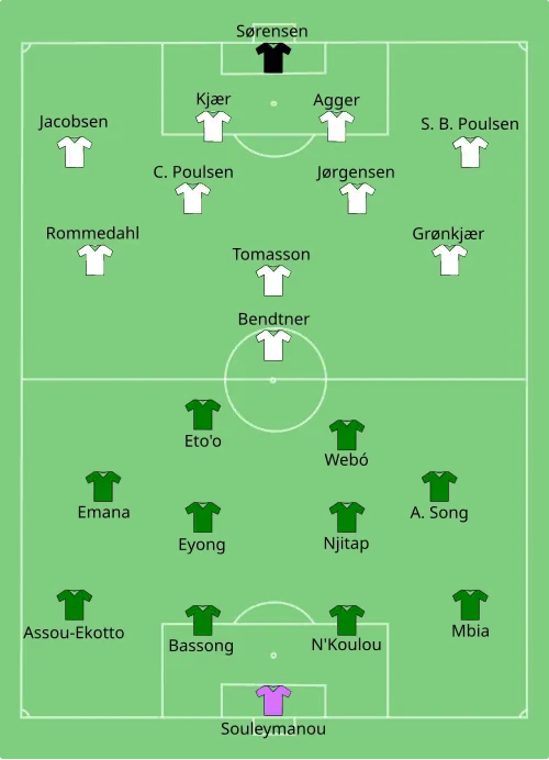 - ↑ Denemarken verslaat Kameroen. Gearchiveerd op 21 juni 2010. Geraadpleegd op 21 juni 2010.