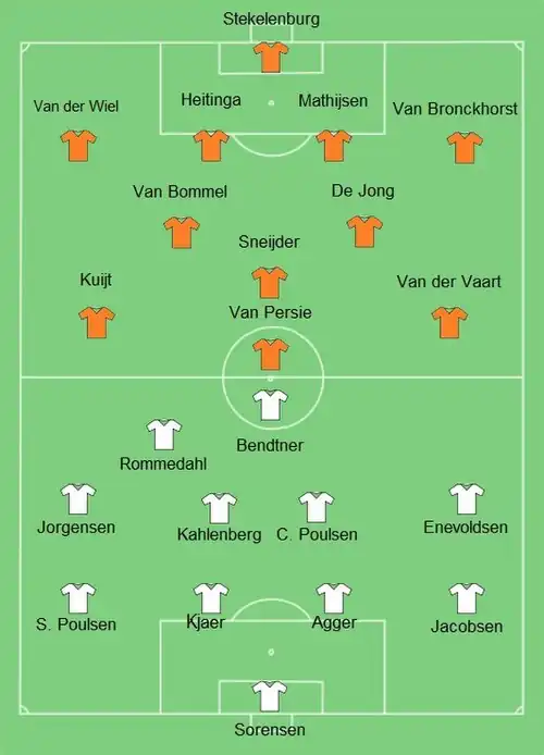 - ↑ Oranje met moeite langs Denemarken. Gearchiveerd op 17 juni 2010. Geraadpleegd op 14 juni 2010.