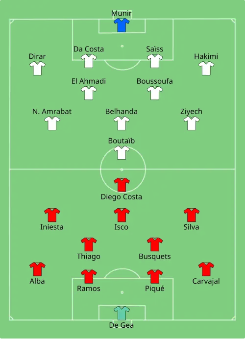 - ↑ Tournament statistics:Spain – Morocco op de officiële website van wereldvoetbalbond FIFA. Geraadpleegd op 21 december 2018.