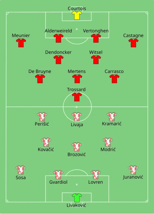 - Kroatië en België troffen elkaar voorafgaand aan deze wedstrijd acht keer, waarvan geen op een groot eindtoernooi. Beide landen wonnen drie van die wedstrijden en tweemaal eindigde het duel onbeslist. België won 6 en verloor 11 van zijn 21 eerdere WK-wedstrijden tegen teams aangesloten bij de UEFA. Kroatië won zes en verloor twee van zijn elf eerdere WK-wedstrijden tegen UEFA-landen.