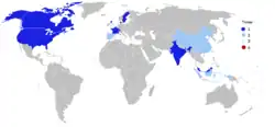 | Land | 77 | 80 | 83 | 85 | 87 | 89 | 91 | 93 | 95 | 97 | 99 | 01 | 03 | 05 | 06 | 07 | 09 | 10 | 11 | 13 | 14 | 15 | 17 | 18 | 19 | 21 | 22 | 23 | Totaal |