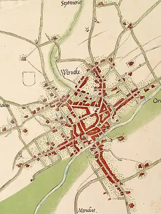 In de 13de eeuw was het aantal inwoners van Wervik sterk gestegen, dankzij de grote bloeiperiode van de lakenhandel die tot op de markten van het Verre Oosten doordrong. In 1297 werd de stad door Filips de Schone ingenomen en gedeeltelijk verwoest.