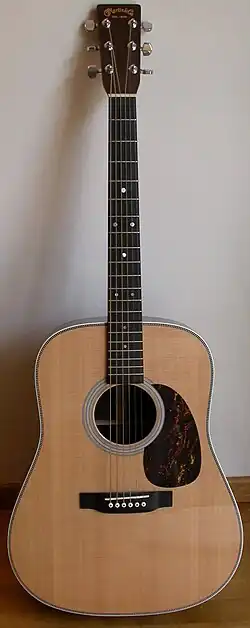 - Dreadnought, origineel door Martin ontwikkeld. Gitaren met vrij hoekige schouders en weinig taille en de neck-joint (overgang hals in klankkast) ter hoogte van de veertiende fret. Naast de Martin D-modellen zijn ook de Gibson J-45 en de Gibson Hummingbird bekende Dreadnoughts. De J-45 met zijn rondere schouders werd van oorsprong overigens door Gibson als de kleinste Jumbo gezien (blijkt ook uit de "J" in het typenummer) maar wordt tegenwoordig als een slope shoulder dreadnought omschreven. Deze gitaren zijn geliefd omdat ze ook zeer stevig slaggitaarwerk, zoals onder meer in bluegrass toegepast, over het algemeen goed kunnen verwerken.