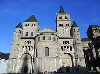 - het westkoor bevindt zich in een westwerk, waarbij de apsis soms ontbreekt.