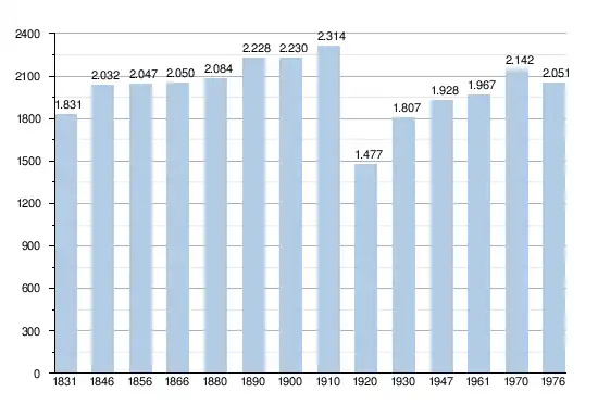 - Bronnen:NIS, Opm:1831 tot en met 1970=volkstellingen; 1976 = inwoneraantal op 31 december